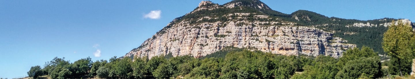 És tal volta l’indret més majestuós de la comarca. Als seus peus ens sentim molt petitons davant tanta grandesa de la natura. Només els més agosarats i idealistes s’arrisquen a escalar aquesta cinglera de 200 m, posant en perill la pròpia vida, com li va passar al jove Ivan Macià Palau, de 28 anys, tot escalant la via dels Fills del Vent el mes de gener passat. Era músic baixista i a Borges Blanques era molt estimat. Hi va haver un gran dol. Era fill de l’ex-alcaldessa i actual diputada de Junts Núria Palau. Descansi en pau l’Ivan que aquí a la terra no parava mai de fer coses bones per la gent. Nosaltres, però, ens remuntarem als orígens d’aquest cingle tan paorós, tot demanant disculpes als geòlegs que no hi estaran pas mica d’acord i molts altres tampoc.